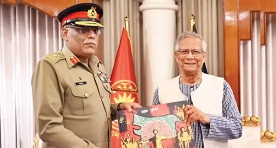 NEW DELHI: CHIEF Adviser of the interim government of Bangladesh Prof. Mohammed Yunus met a high-level Pakistani military visitor during the weekend and gifted him a book that depicted parts of northeast India as part of Bangladesh.